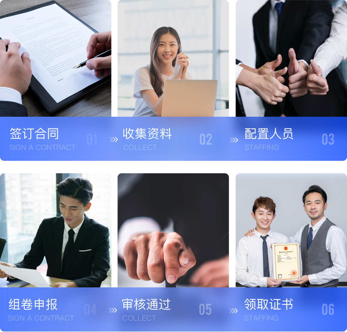 拥有完备的资质办理流程,专人跟进,项目化推进,能够快速、高效完成资质办理